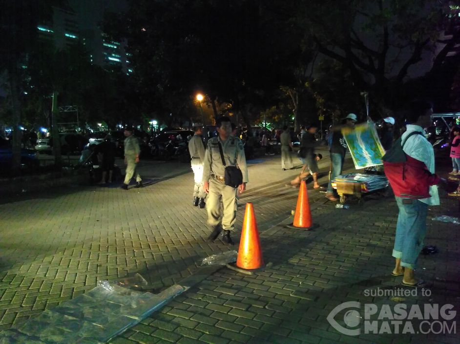 Satpol pp mengusir para pedagang di sekitar monas, hal tersebut membuat kocar kacir para pedagang kaki lima,, tidak sedikit barang dagangan mereka yang di angkut oleh satpol pp