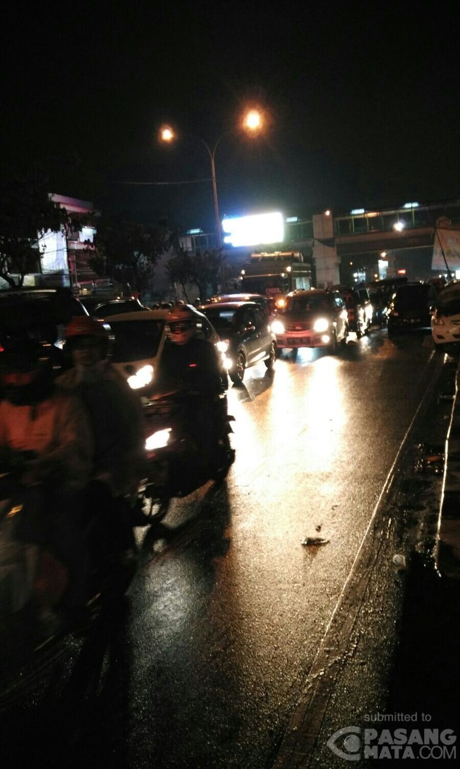 Lalin Jl Margonda Raya Depok depan Kantor Walikota terpantau padat di kedua arah.Pk 21.15