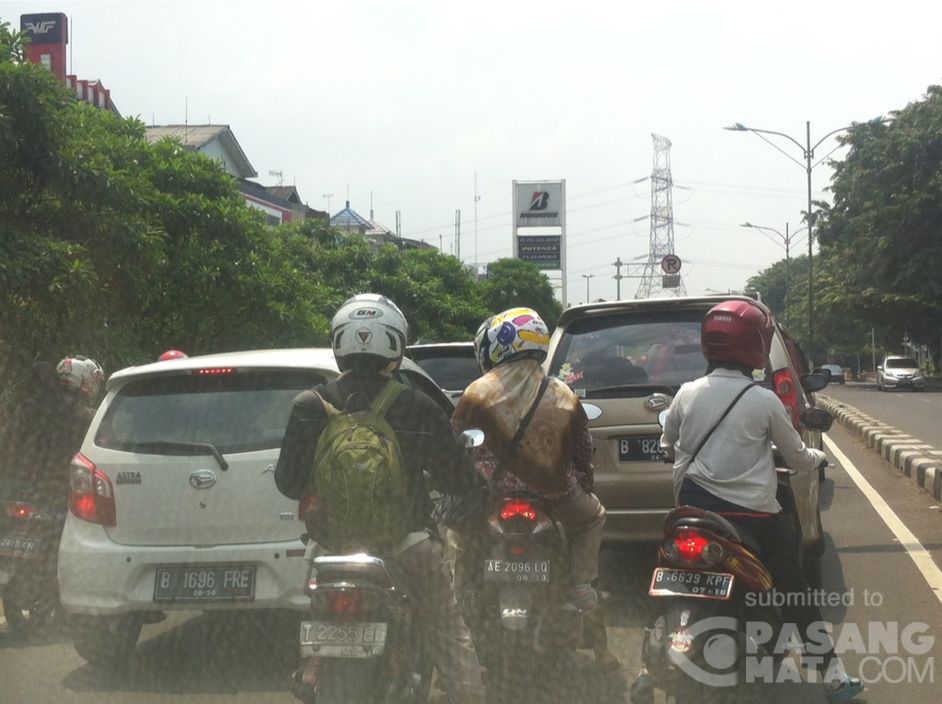 Jl Chairil Anwar kota Bekasi arah GT Bekasi Timur padat merayap, cuaca cerah