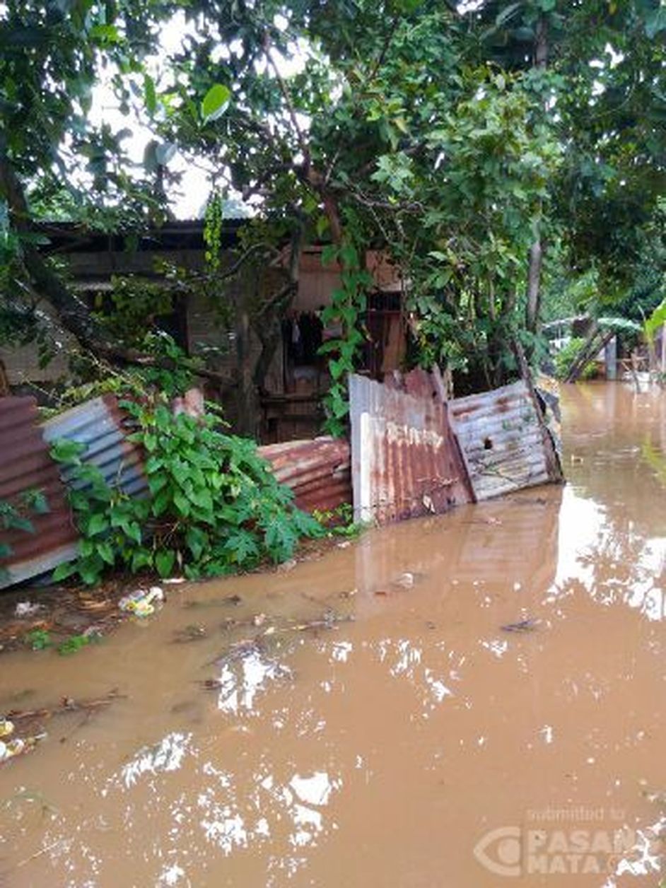 Tampak kondisi rumah warga yang mulai terendam banjir di sekitar Jl. Subur Pondok Pinang, Jakarta Selatan, imbas meluapnya kali Pesanggrahan. [Adi Suntoro]