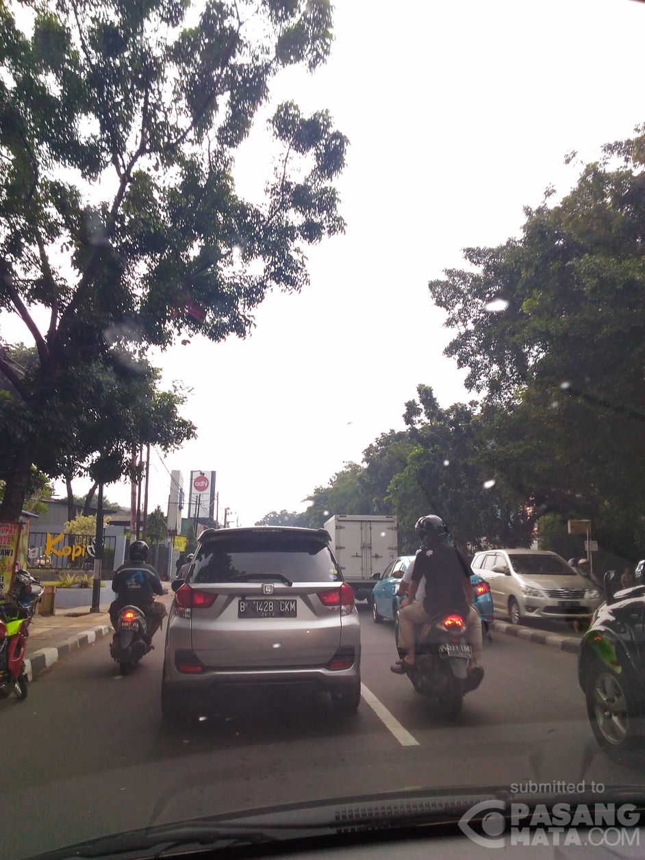 Kelakuan pengendara bila berada di lampu merah. Maju ke depan lewati batas garis agar bisa jalan duluan. Padahal sangat membahayakan. Lokasi lampu merah Kalibata - Pasar Minggu.