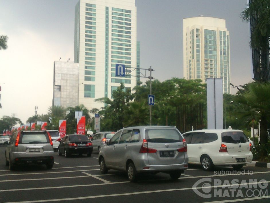 lalu lintas di senayan city menuju bundaran senayan dan kawasan pakubuwono tampak padat kendaraan.cuaca hujan gerimis