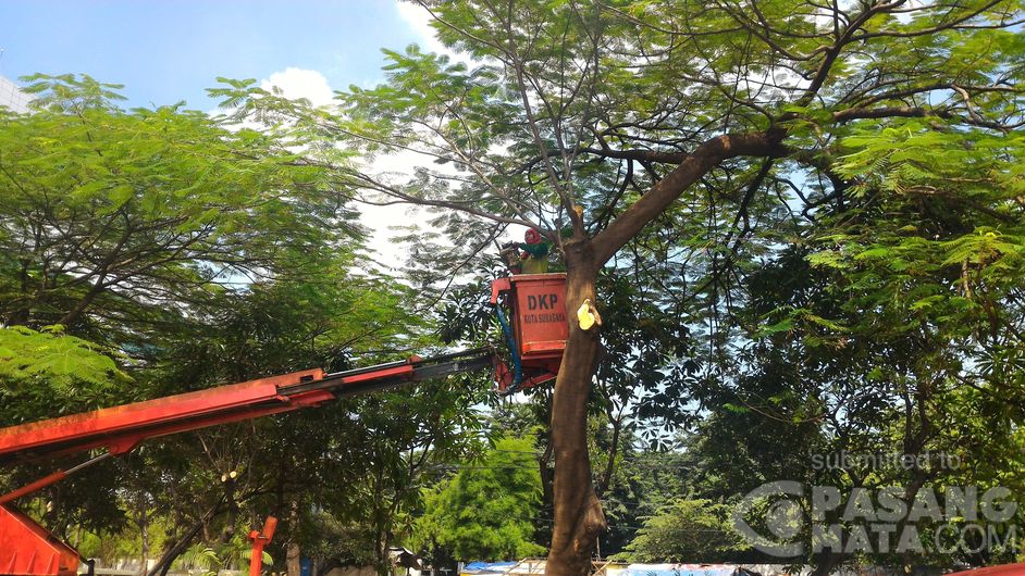 Perawatan pepohonan di Kota Surabaya, penebangan pohon2 yg terlalu rindang dan membahayakan pemakai jalan jika ada angin kencang. Lokasi: Jalan Professor Dokter Musotopo
