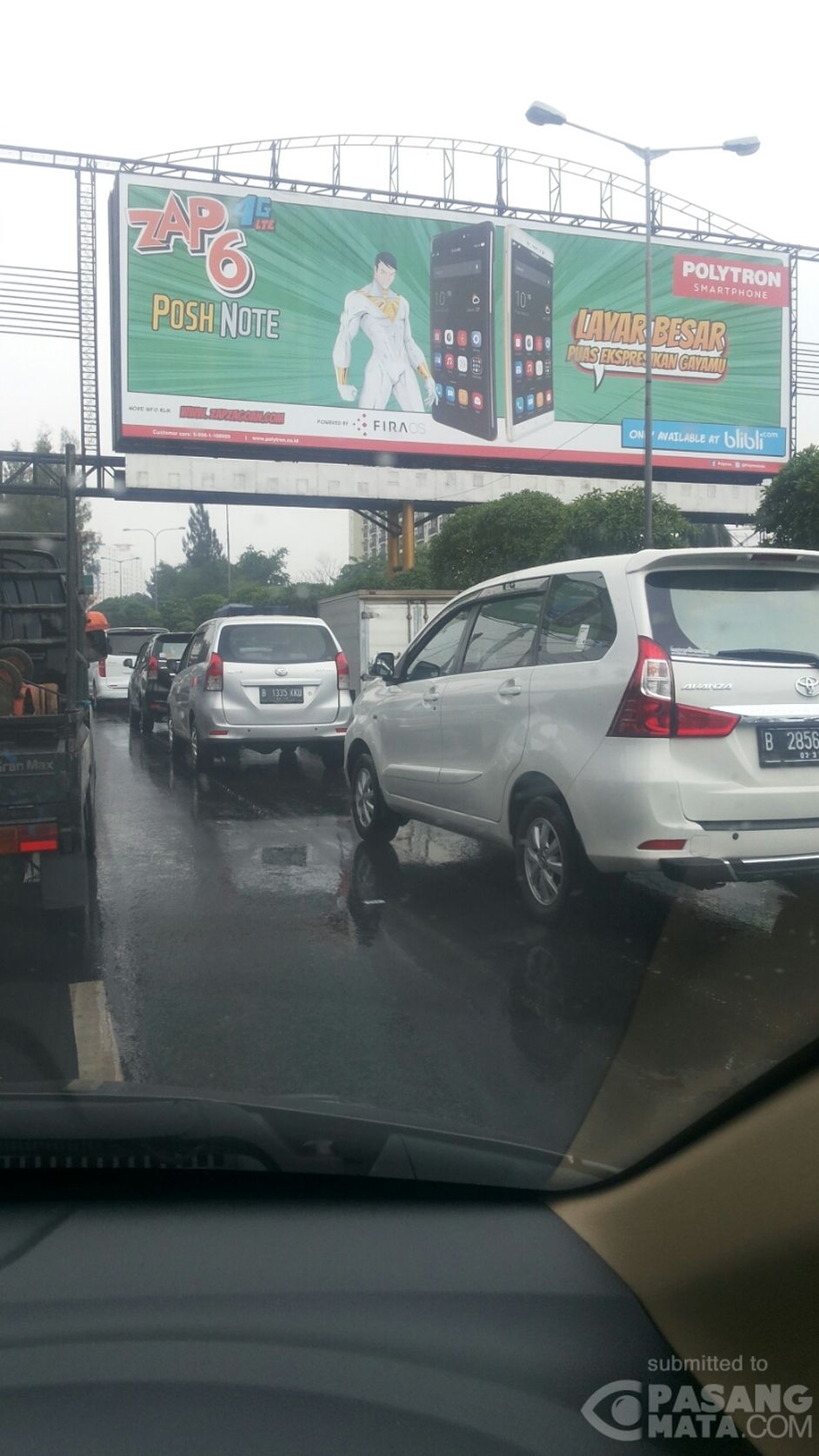Tol Bekasi barat antrean panjang dan cuaca turun hujan .