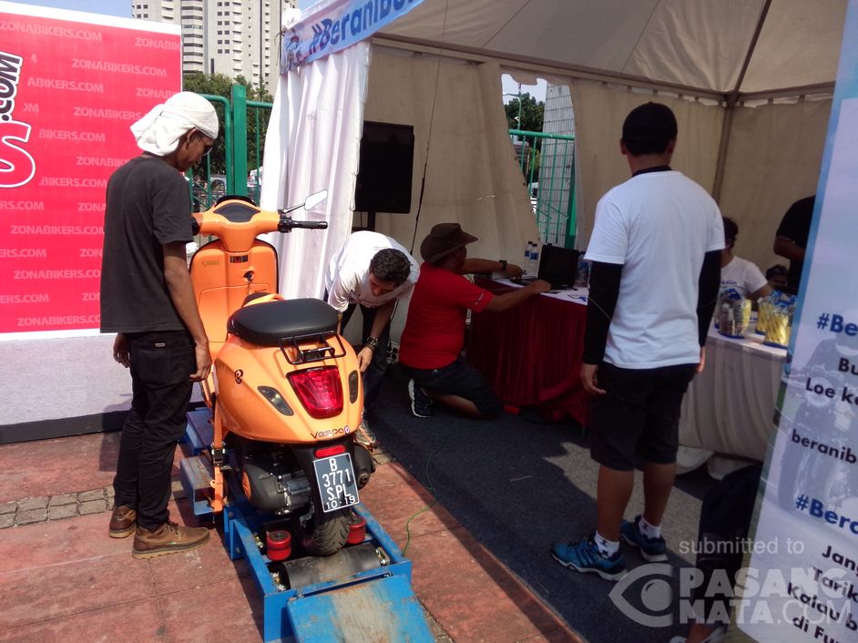 Salah satu booth di PARJO, menyediakan tempat untuk cek atau tes tenaga motor pengunjung. Tak heran tempatnya ramai dikunjungi banyak orang dan lokasinya dekat pintu masuk. lokasi parkir timur senayan