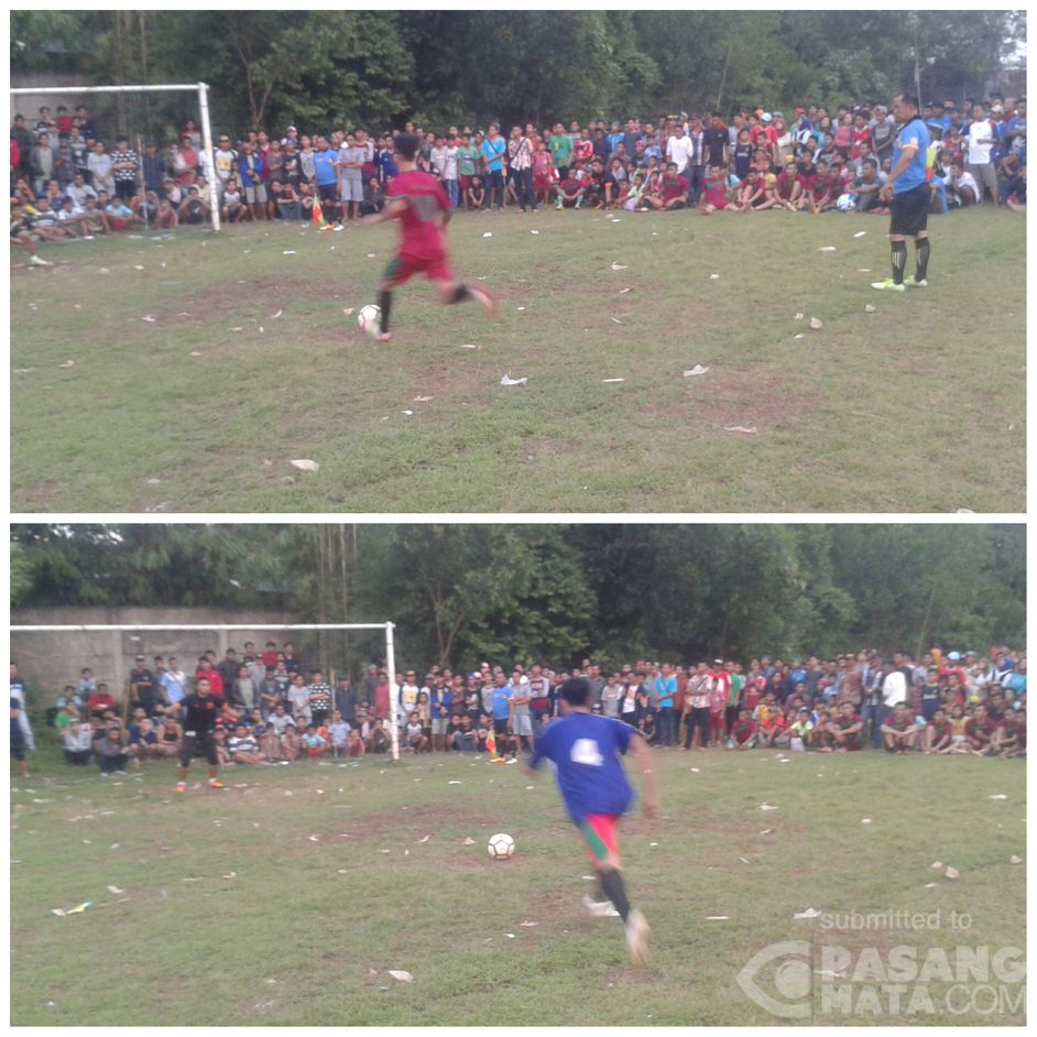 Menuju semi final Open Tournament Forum Pemuda Desa Cangkudu. Kekuatan tim seimbang, pemenang ditentukan dari hasil adu finalti.