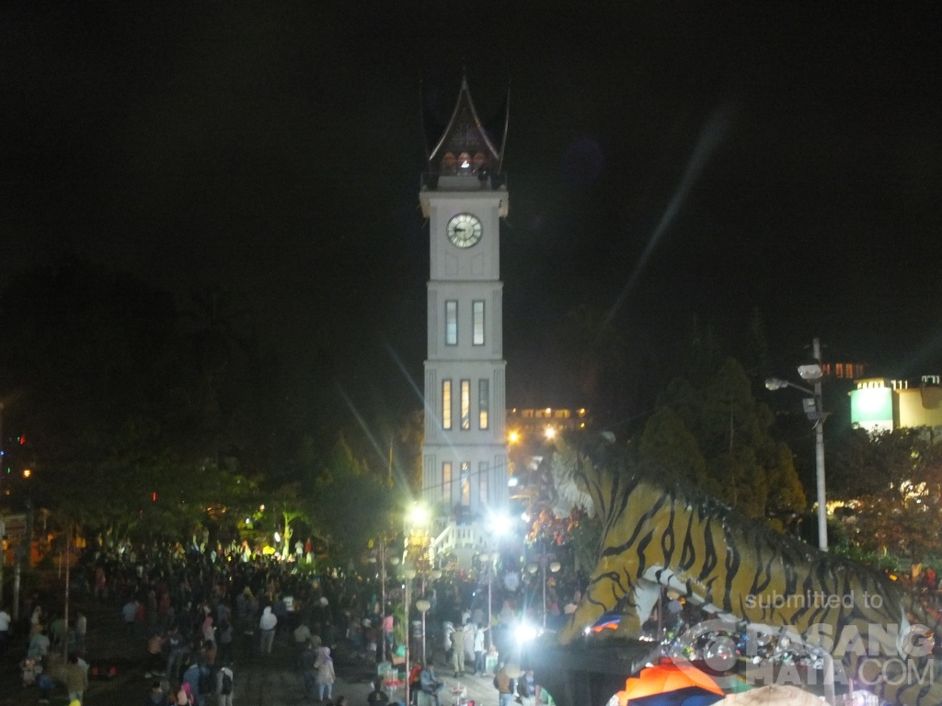 Ratusan orang berkumpul melihat atraksi randai dan tari piring di pelataran Jam Gadang. Sabtu malam (12/3/2016)