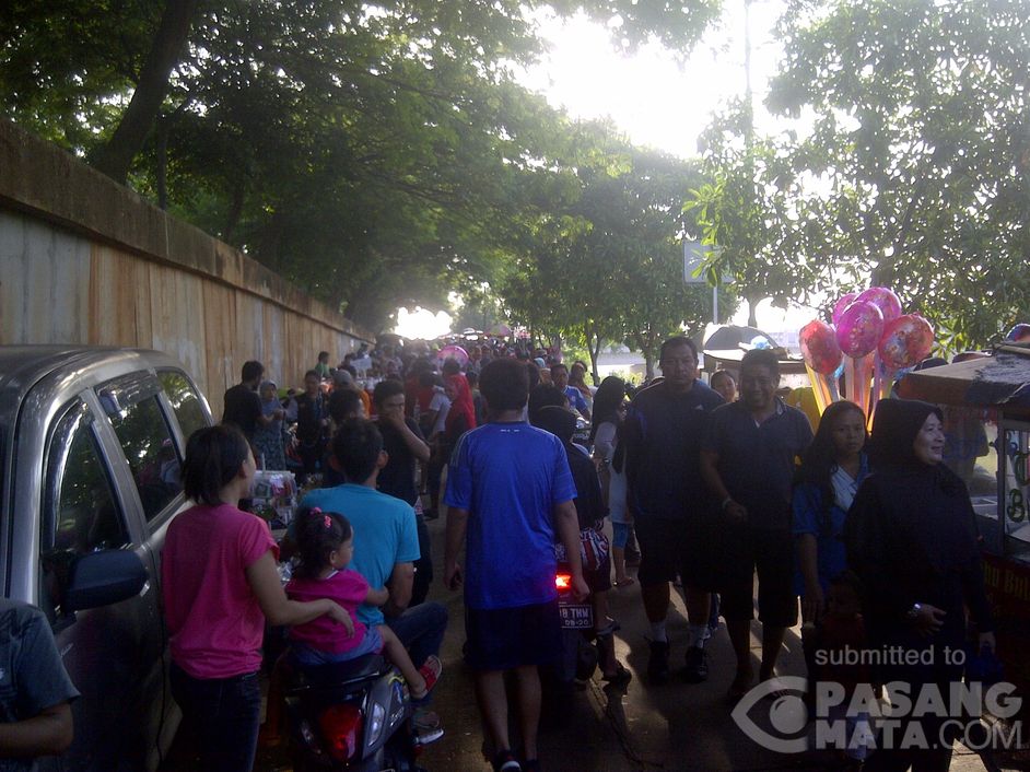 Banjir Kanal Timur (BKT) menjadi tempat pilihan warga untuk berolahraga (jogging track) namun banyak PKL berjualan memenuhi jalan di sepanjang jalur sepeda mengakibatkan warga jadi berdesakan.