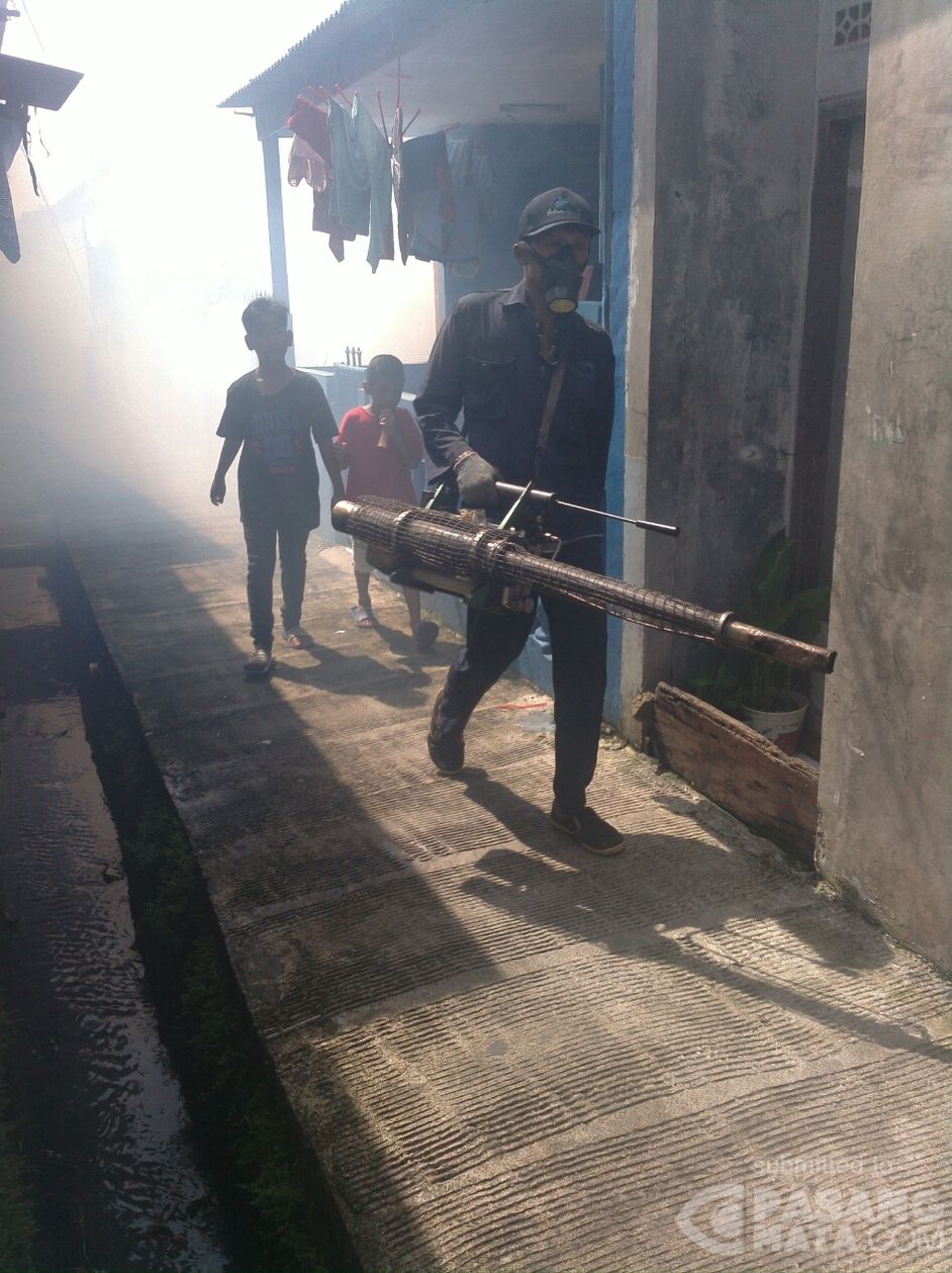 Kampung Jemblongan Pancoran Mas Depok sedang di adakan penyemprotan nyamuk demam berdarah.