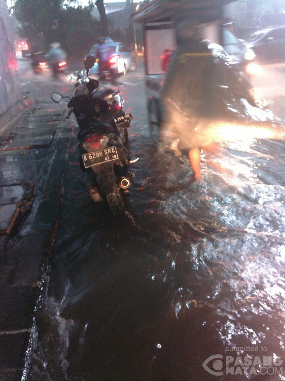 akibat hujan deras kolong jembatan Stasiun Cawang tergenang banjir setinggi 10 cm
