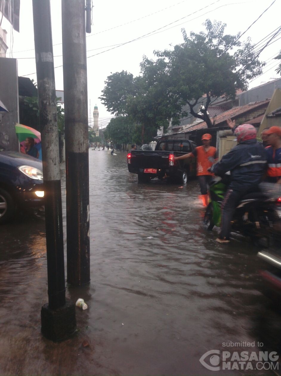 Banjir menutup akses jalan di jl Pengadegan Timur arah ke Kalibata