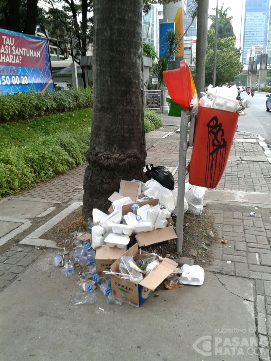 Sampah di tempat sampah. Sehabis ada demo tinggalkan sampah di depan Jasa Raharja