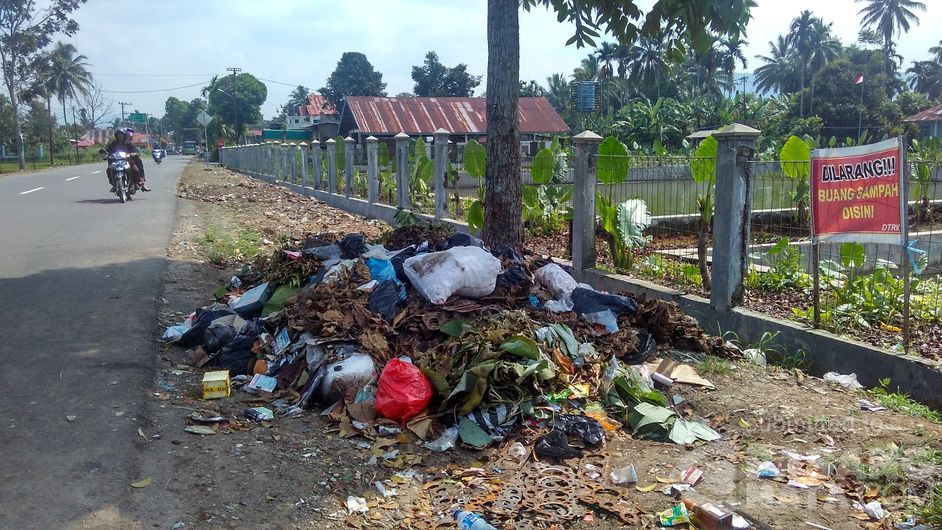 Diabaikan, meskipun sudah diberikan larangan buang sampah, masyarakat tetap tidak peduli dan masih membuang sampah di Jalan Imam Bonjol Padang Tinggi, Kecamatan Payakumbuh Barat, Kota Payakumbuh, Sumbar.
