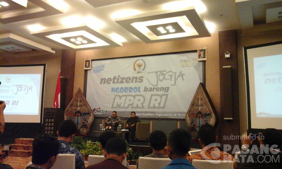 Ketua MPR RI Bp. Zulkifli Hasan didamping Sesjen hadir sebagai pembicara kunci acara Netizens Jogja Ngobrol Bareng MPR RI di Yogyakarta.