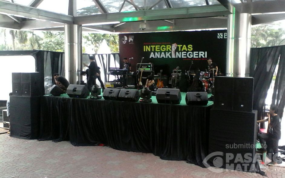 Tampak persiapan acara ragam budaya, INTEGRITAS ANAK NEGERI, dalam rangka hari jadi Serikat Pekerja BNI, di halaman parkir Kantor Besar BNI, Jl. Jend. Sudirman, Jakarta Pusat.