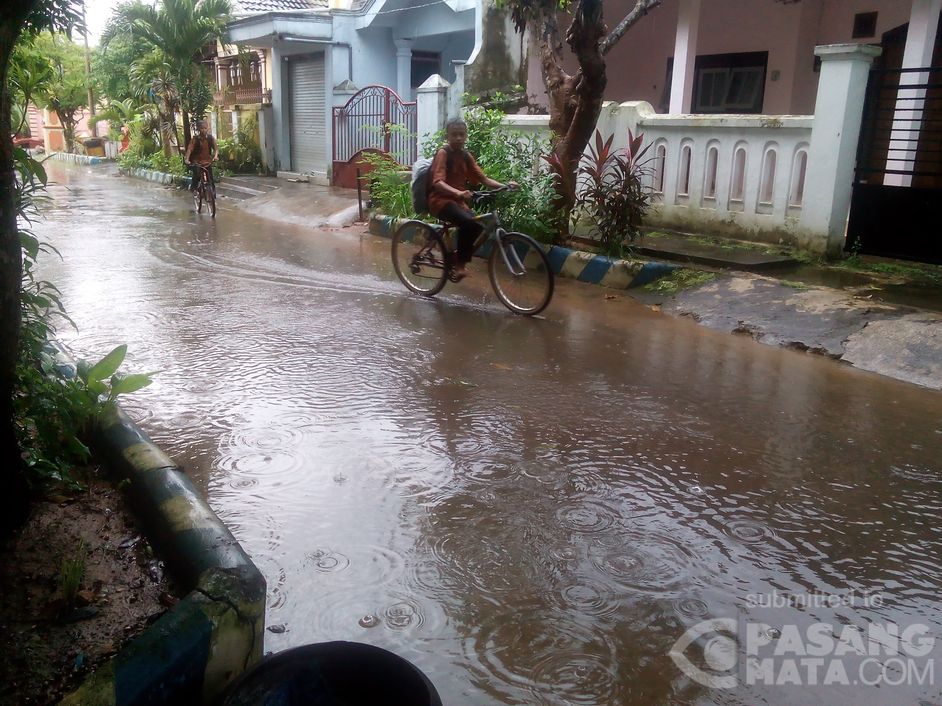 Hujan Deras yang mengguyur kota Sumenep, Jawa Timur siang ini sempat membuat ruas jalan di beberapa daerah tergenang air. salah satunya di jalan Sepanjang, perumnas Giling Pamolokan.