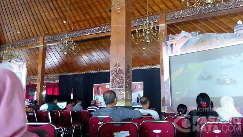 Suasana nonton bareng F1 di balai kota Surakarta siang ini. Warga Solo mendukung Rio Haryanto