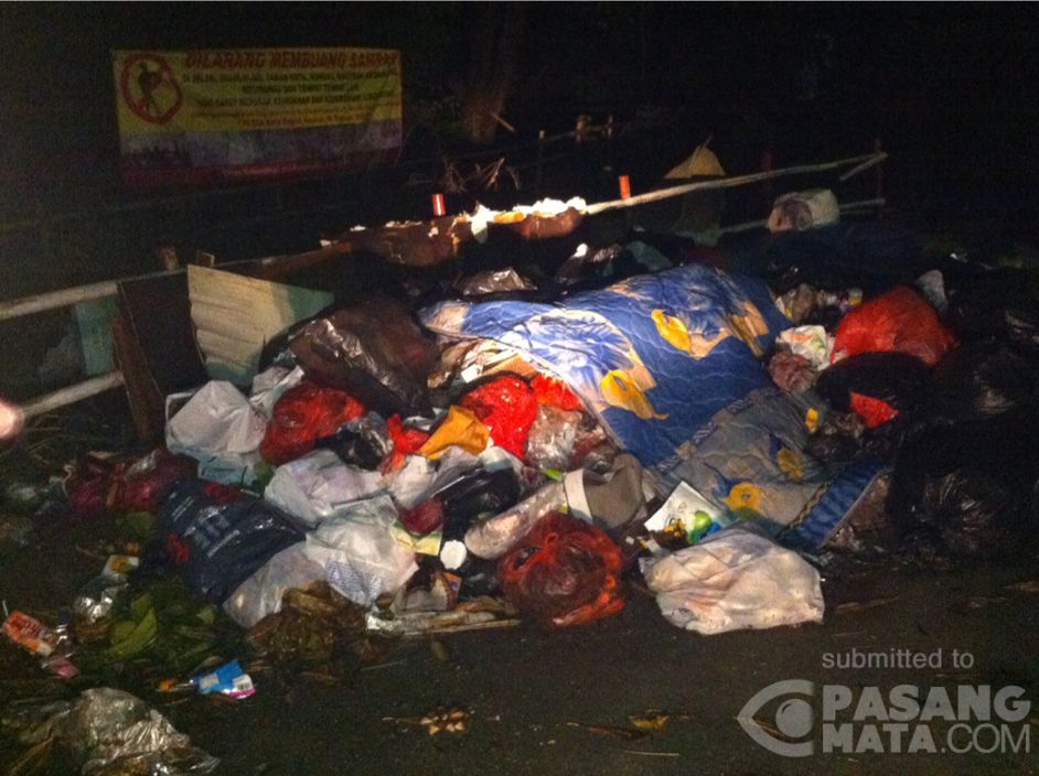 Spanduk peringatan pembuang SAMPAH LIAR pun tidak dihiraukan.. MIRIS..!!! Kasur pun ikut bertebaran...di jalan villa mutiara cinere depok