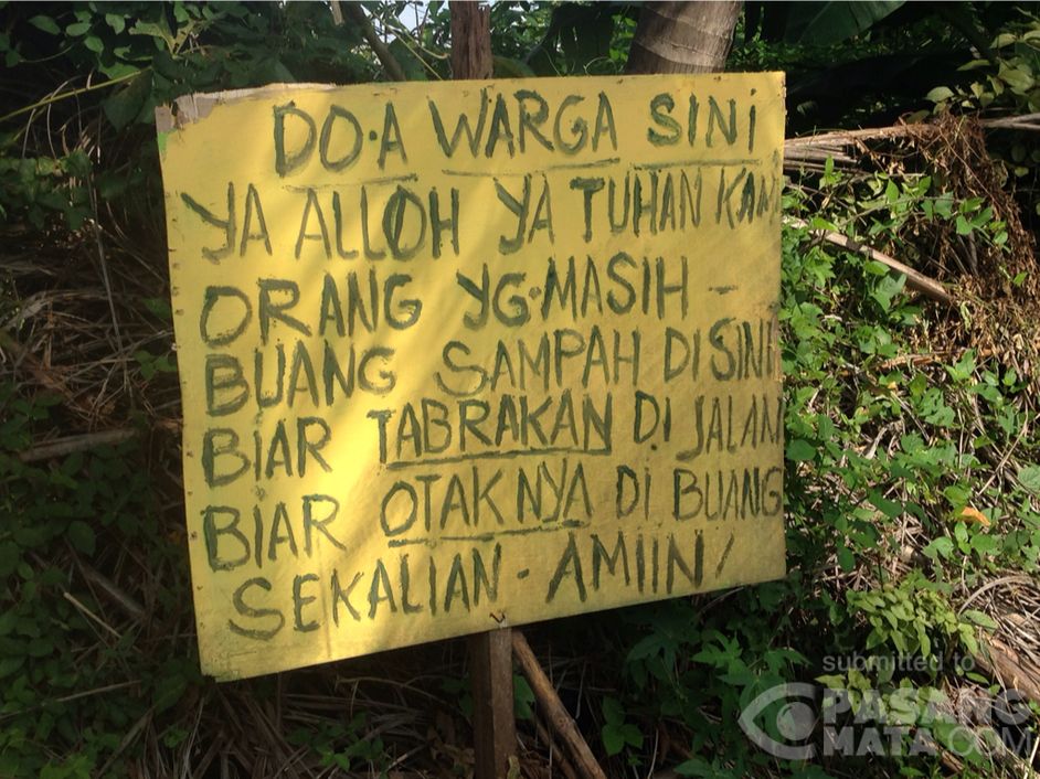 Unik dan menarik! Peringatan untuk tidak buang sampah sembarangan di Cinangka Sawangan