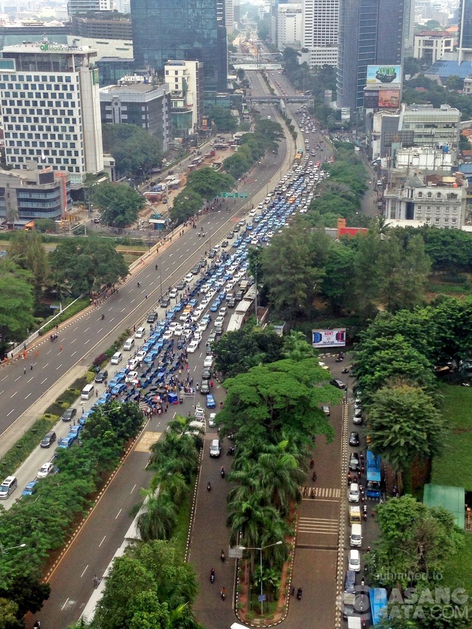 Demo taksi depan stasiun sudirman, membuat lalu lintas macet parah. Mobil pribadi hanya dapat lewat di jalur busway. Kejadian ya hari ini sekitar jam 10.30 wib. Menurut info di tempat ini juga ada metro mini yang kacanya dipecahkan karna mengangkut penumpang.