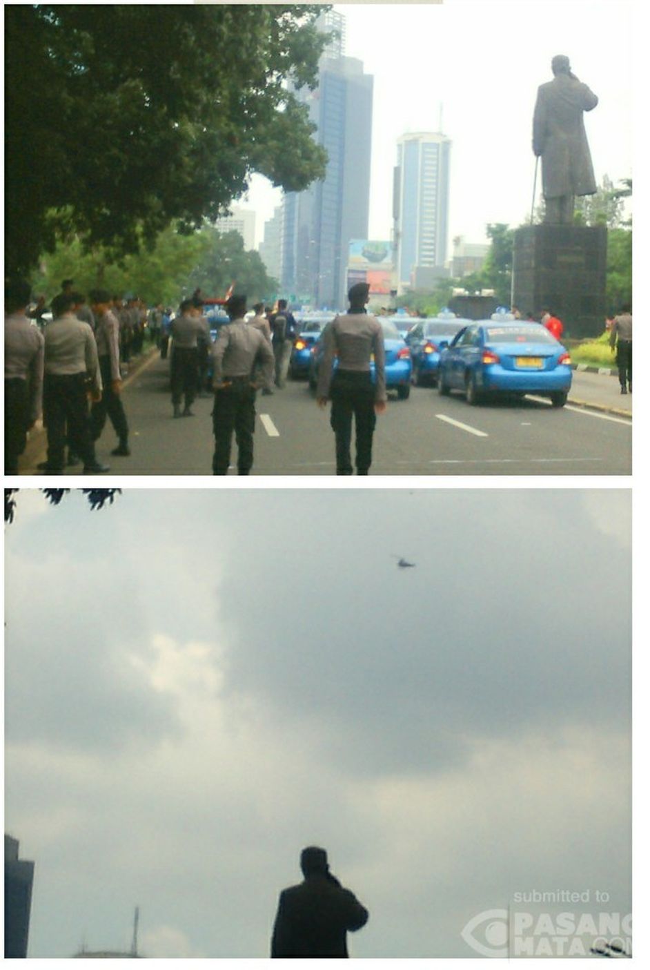 Ratusan aparat dan tampak sebuah Helikopter polisi sudah mengawal aksi demo ke Monas
