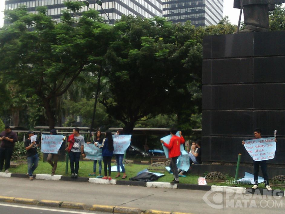 anak-anak sopir taksi ini pun ikut menyuarakan suaranya membantu orangtuanya yg saat ini sedang berdemo