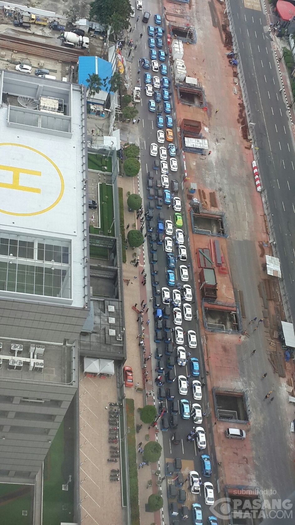 Konvoi taksi berbaris rapi dan berhenti di depan Plaza Indonesia