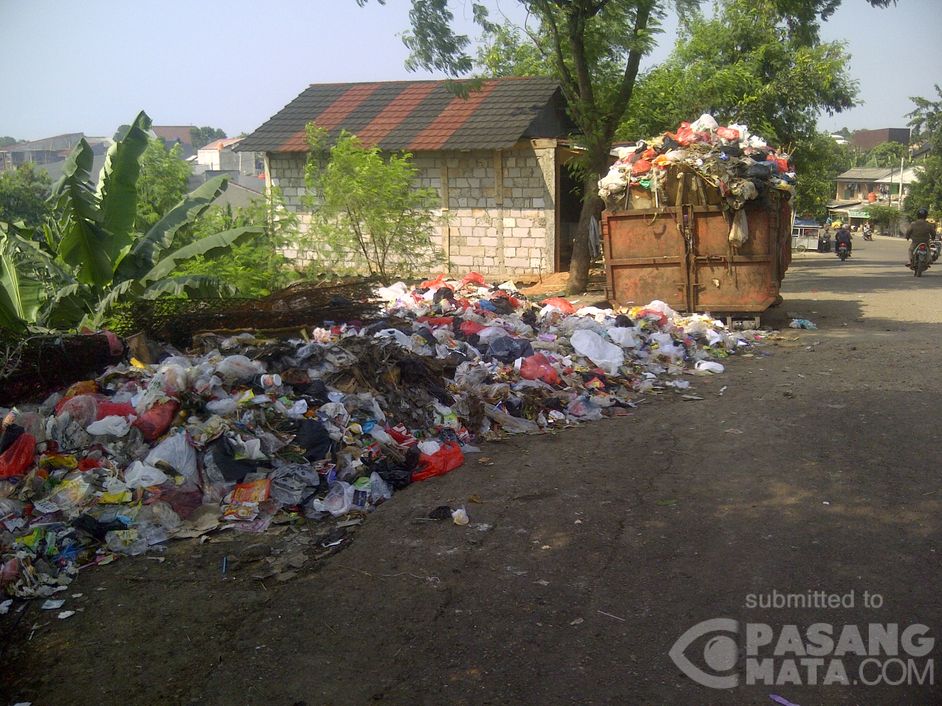 Tumpukan sampah ini di biarkan menggunung di kampung Setu Bintara Bekasi