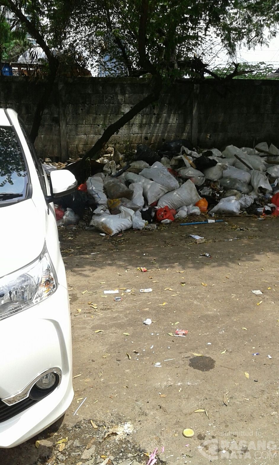 Sampah dan parkir mobil. Masih ada tumpukan sampah di area parkir mobil jalan Karet Karya Setiabudi, depan Gedung Graha Surya.