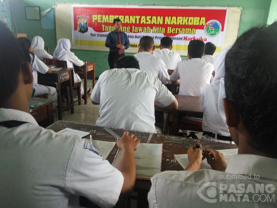 Satreskoba Polresta Mojokerto getol lakukan sosialisasi bahaya narkoba, salah satunya pada pelajar SMA Taman Siswa kota Mojokerto, langsung dipimpin Kasatreskoba AKP Hendro S.