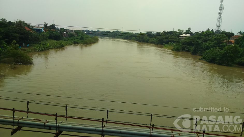 Penampakan aliran sungai citarum volume air makin meninggi