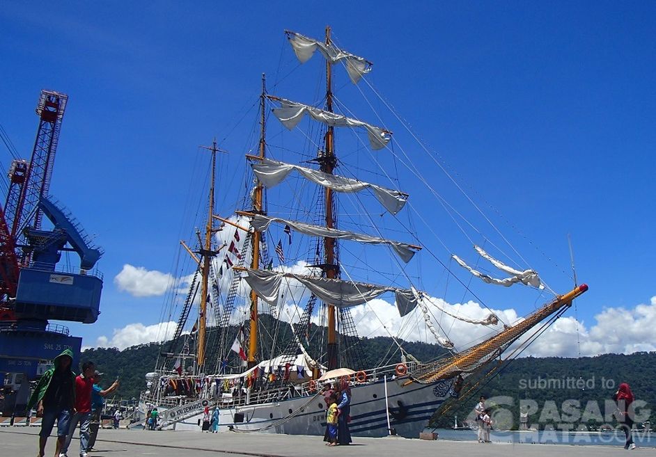 KRI Dewaruci yang bersandar di dermaga teluk bayur, Padang menjadi serbuan warga kota padang, untuk mengabadikan momen berwisata bahari ke kapal tersebut, dalam rangka Agenda Multilateral Naval Exercise Komodo 2016, Kamis (14/4/2016)