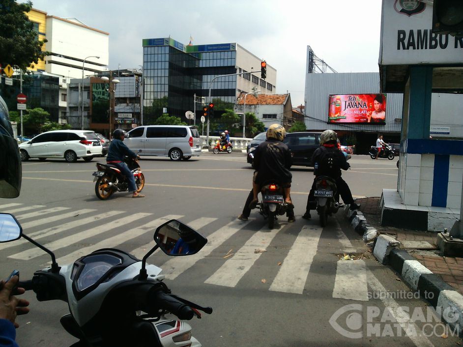 Inilah para pemotor yang merampas hak pejalan kaki dengan melewati garis stop. Lokasi Jl Mangga Besar Raya