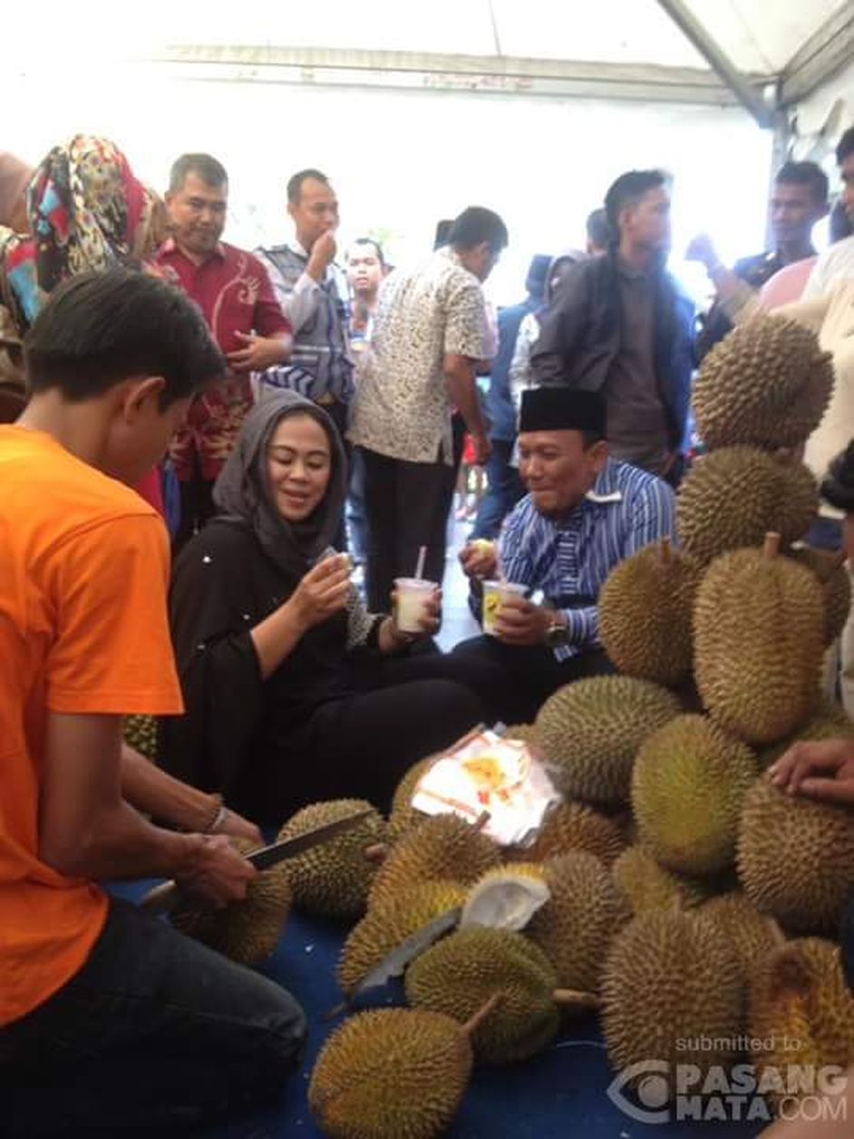 Bupati dan wakil Bupati Karawang mencicipi durian, saat Festival Durian di Mall Karawang.