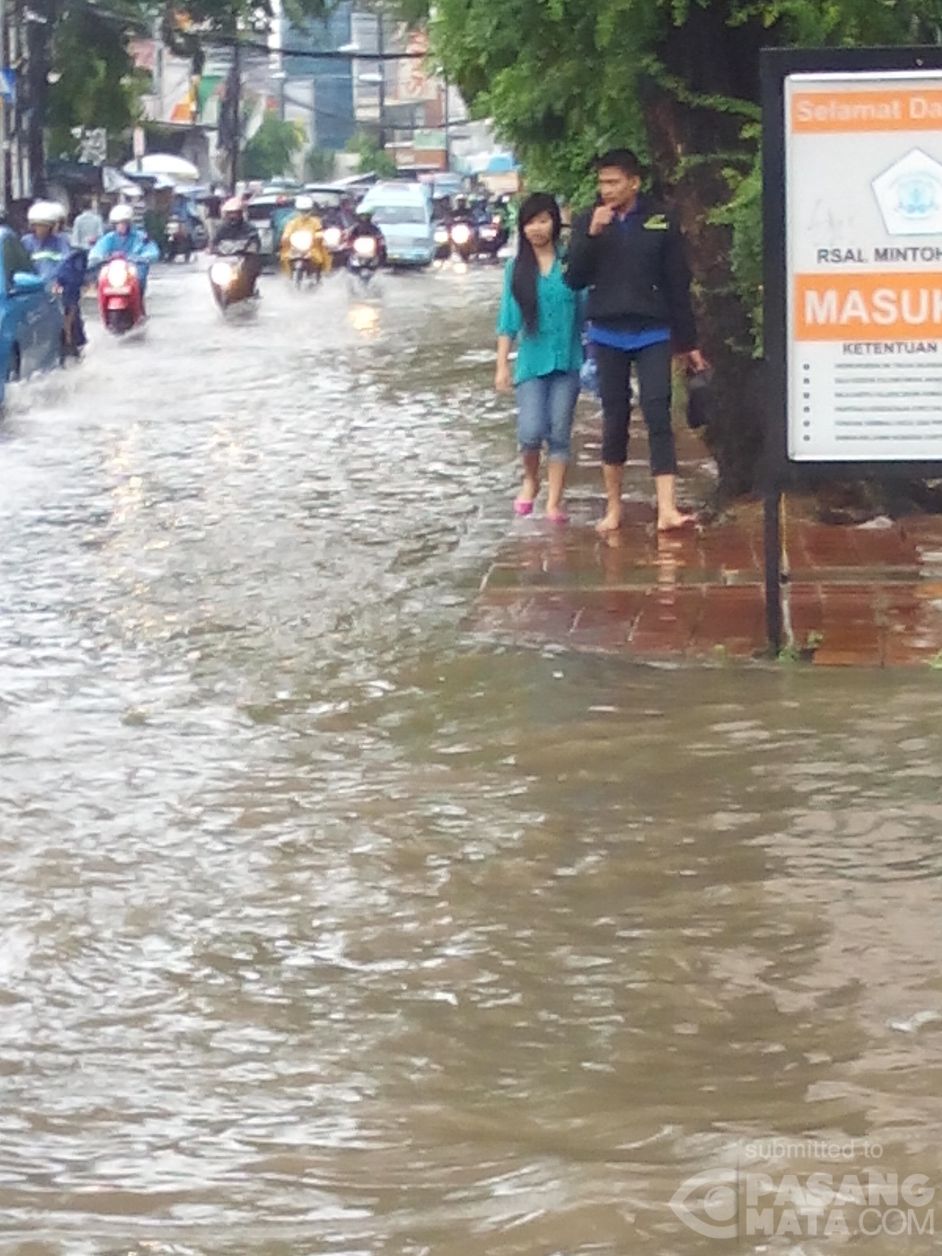 Inilah penampakan banjir di depan RS AL Mintoharjo, Jakarta Pusat imbas hujan sejak tadi malam.