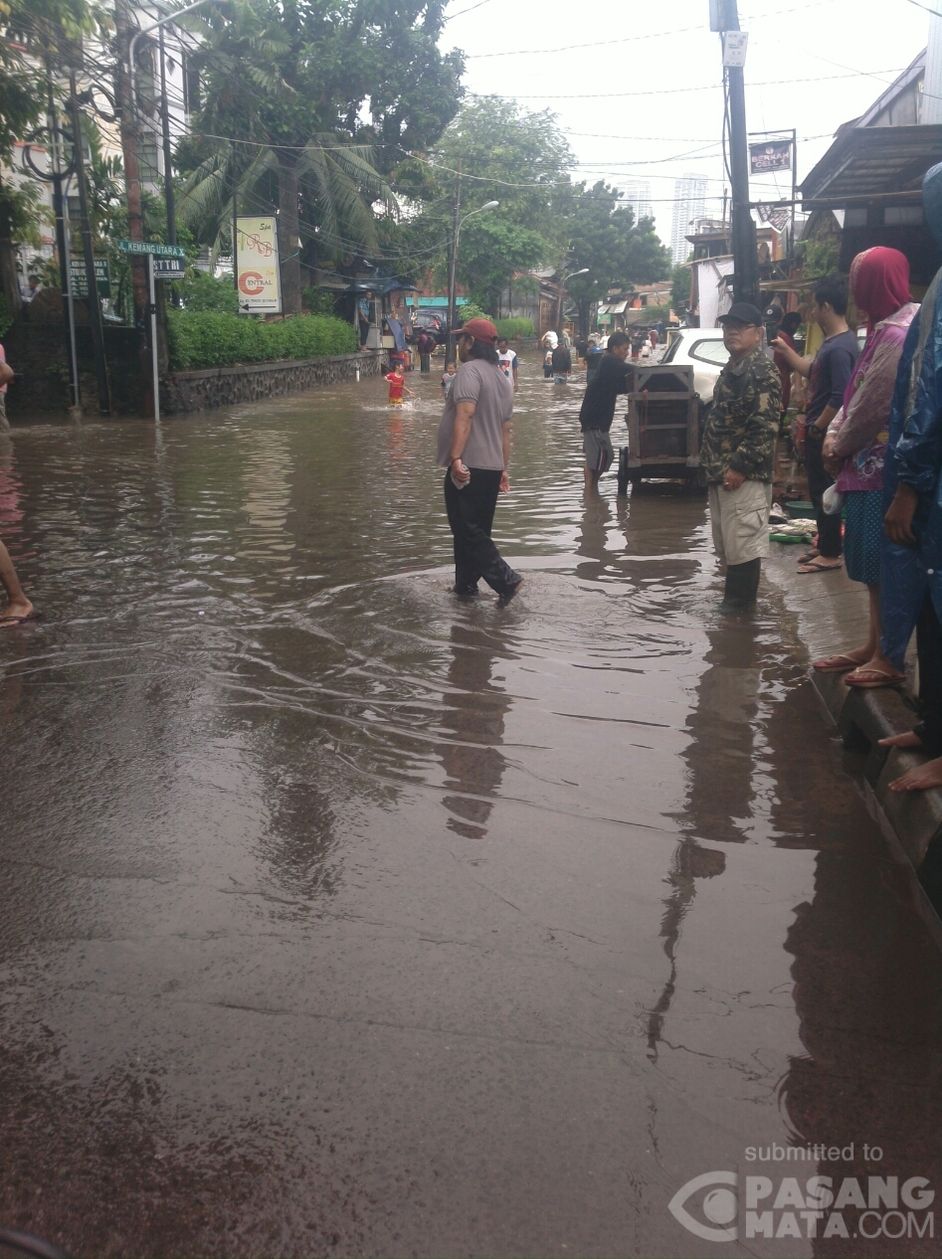 banjir menggenangi jl kemang utara 10 pasar jagal arus lalu lintas pun ditutup