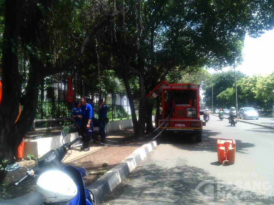 hingga siang ini mobil penyedot air dan petugas DamKar masih berjuang menguras air yang menggenangi kawasan Karet