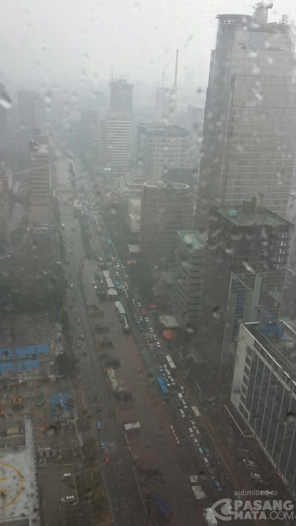 Hujan Deras Mengguyur Kawasan MH Thamrin