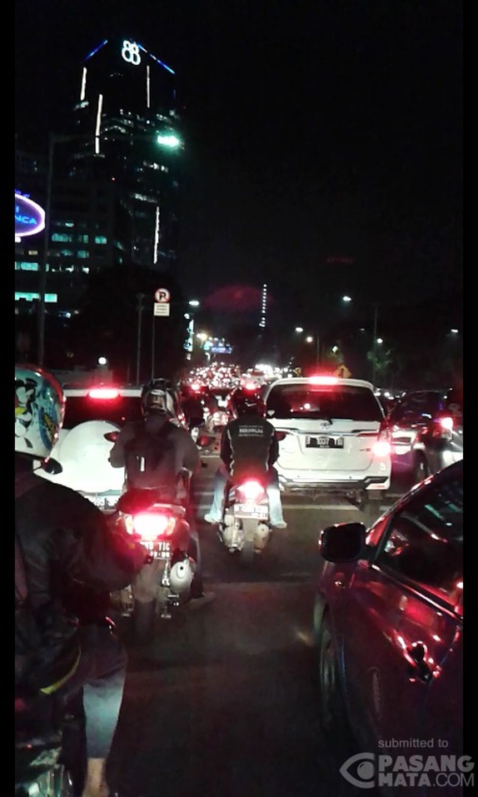 lalu lintas jl raya kasablanka arah kampung melayu terpantau padat.