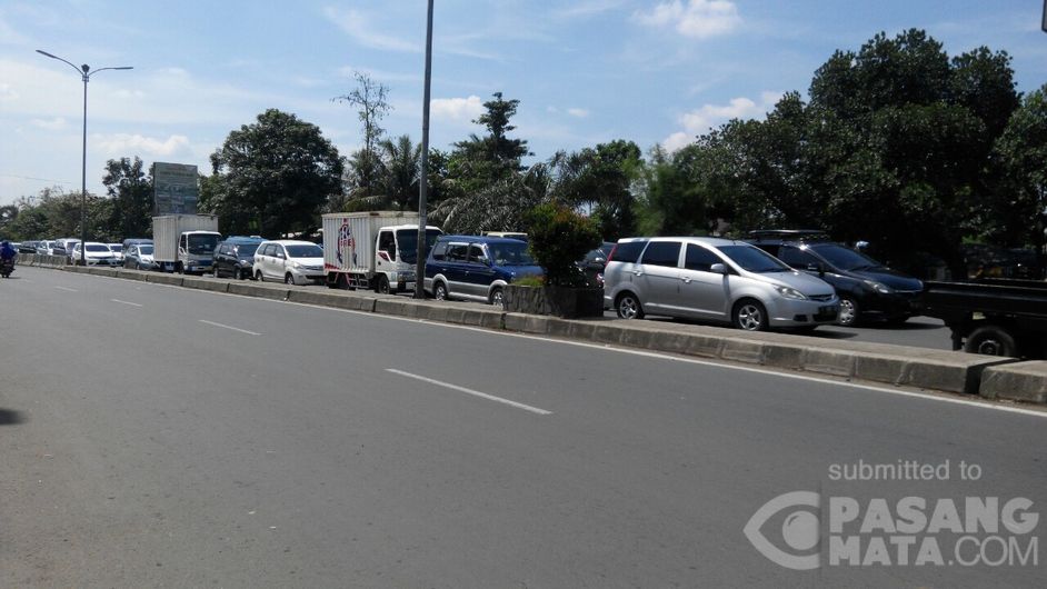 12.47 WIB Lalin Jalan Raya Bogor, jelang TL. Tegar Beriman dari Cikaret arah Sentul, antrian mengular.