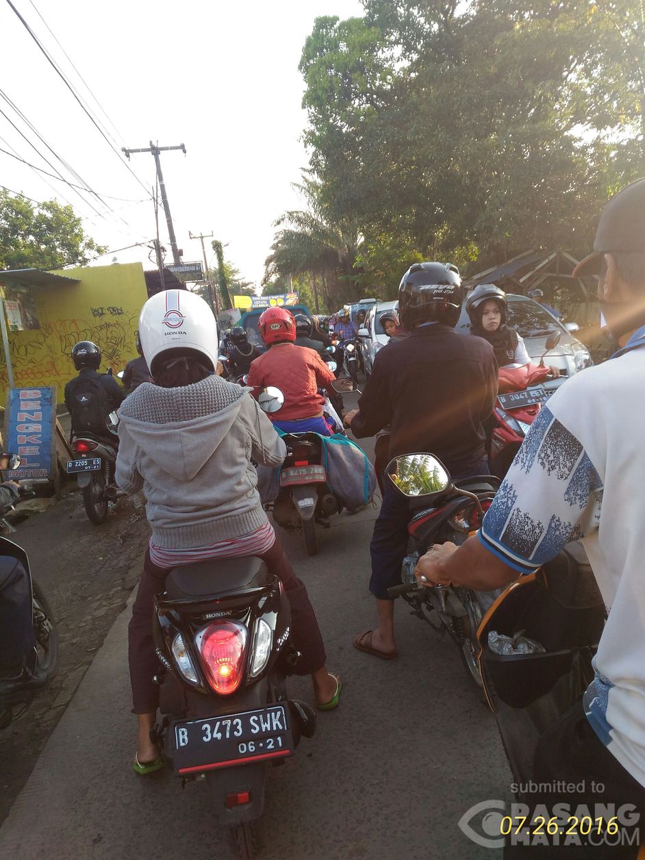 arus lalu lintas di jl raya tanah baru pertigaan kampung jemblongan padat merayap