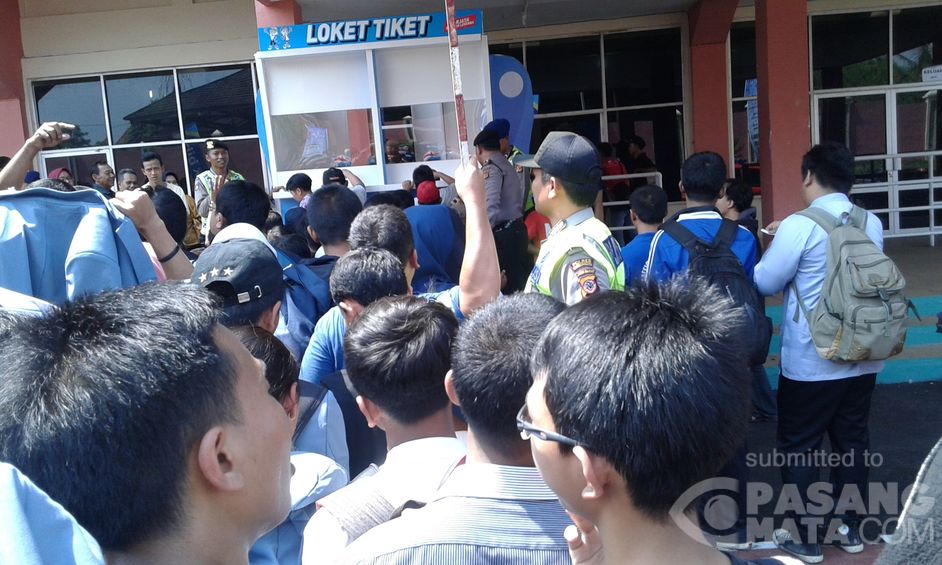 Hari ini partai final bulutangkis beregu putra PON XIX di kompleks olahraga Bima, Kota Cirebon. Warga Cirebon antusias antri di depan lokrt.
