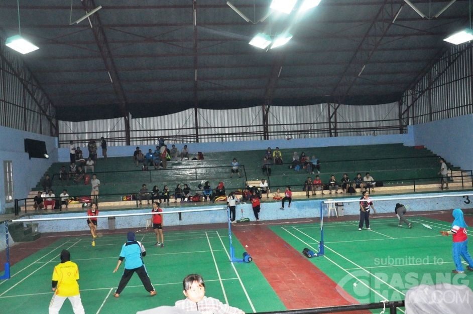 07.30 WIB, Para atlit Bulutangkis di lingkungan Pemda Bangka mengikuti Kejuaraan bulutangkis dalam rangka Porseni Kopri di Stadion Orom Sungailiat.