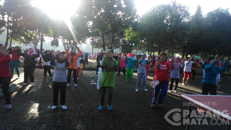 Aksi Senam Bareng Warga Cipayung di Taman Agrowisata