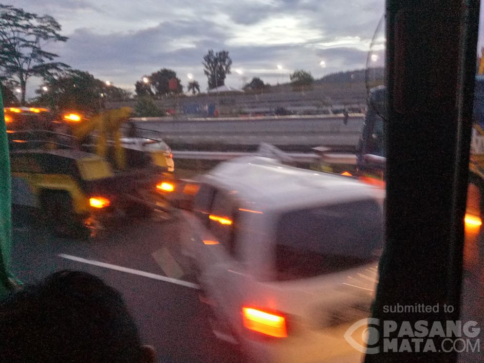 Kecelakaan mobil di Jagorawi arah jakarta di deket pintu tol Sentul. Posisi mobil di tengah jalan. Sudah ada petugas yang menangani. Korban terjepit.