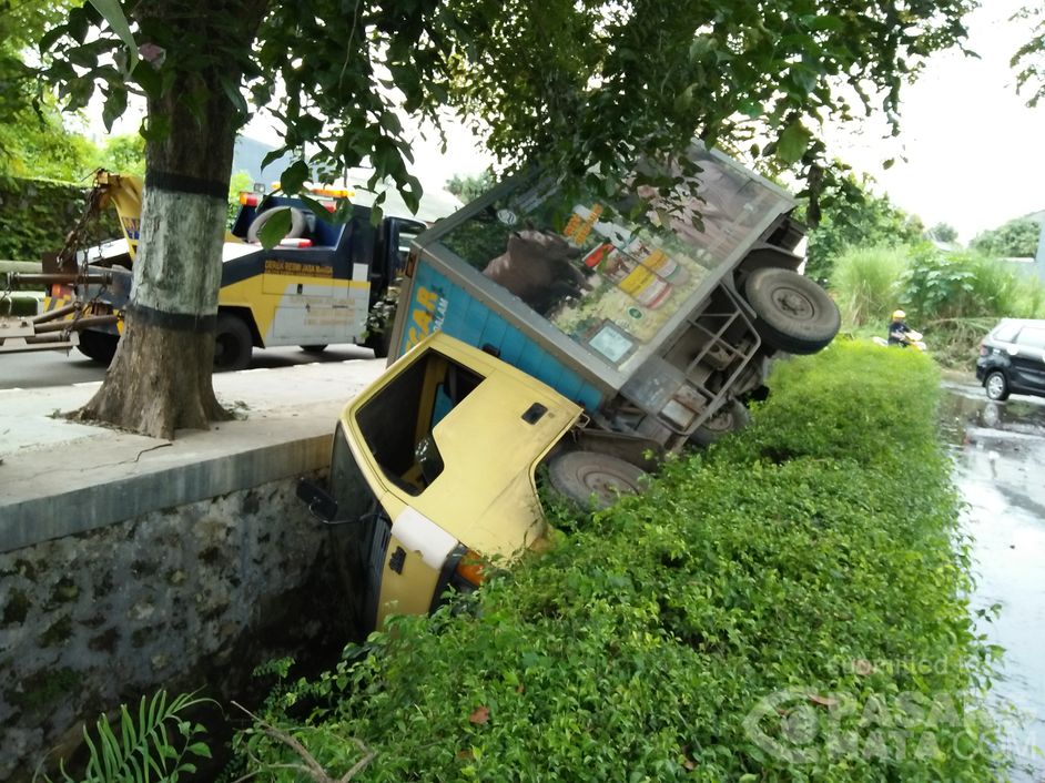 Sopir Mengantuk, Sebuah Truk Masuk Parit