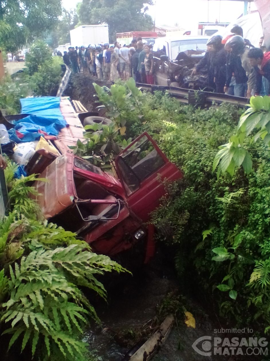 Penampakan kecelakaan truk dan mobil kijang akibat truk mengalami rem blong di depan terminal lama Bumiayu yg mengakibatkan 2 orang yg mengendarai sepeda motor meninggal dunia .