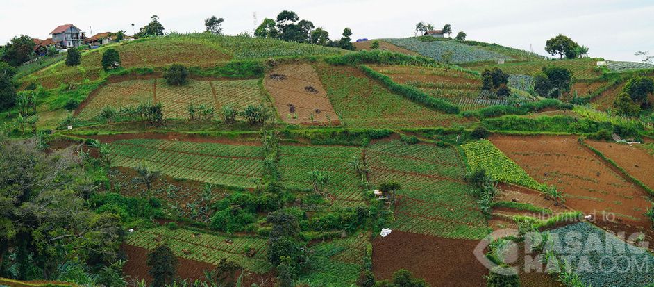 Areal perkebunan di desa Ciburial nampak indah dipandang mata dari ketinggian Tebing Keraton, Bandung.