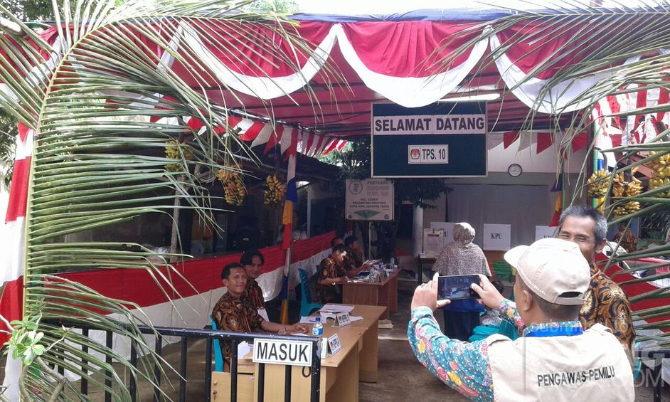 Rabu (15/2/2017) Tampak Petugas Pengawas Pemilu mengabadikan moment Pemungutan suara di TPS 10 Rt 3/2 Ceger Jakarta Timur.