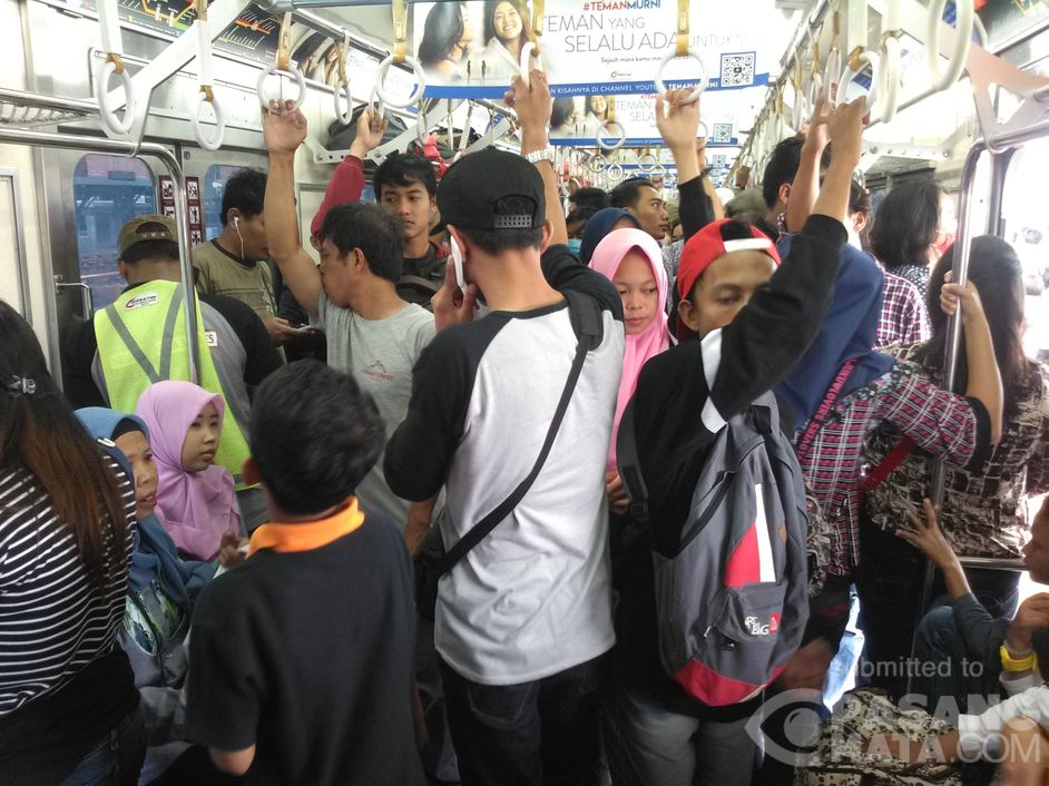 Tampak ramai suasana penumpang KRL di hari libur nasional dalam rangka Pilkada serempak tahun ini. Namun ramainya penumpang berbeda dengan biasanya, karena hampir didominasi dengan penumpang yang membawa anggota keluarga untuk sekedar mengisi liburan, setelah selesai melakukan pencoblosan